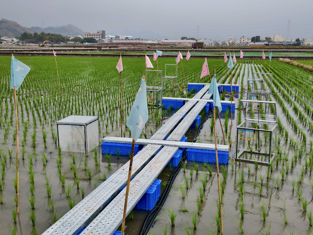 我們這兩天在田裡,除了重新標記實驗區塊的位置,也在建立水路,讓人可以在水田上行走。